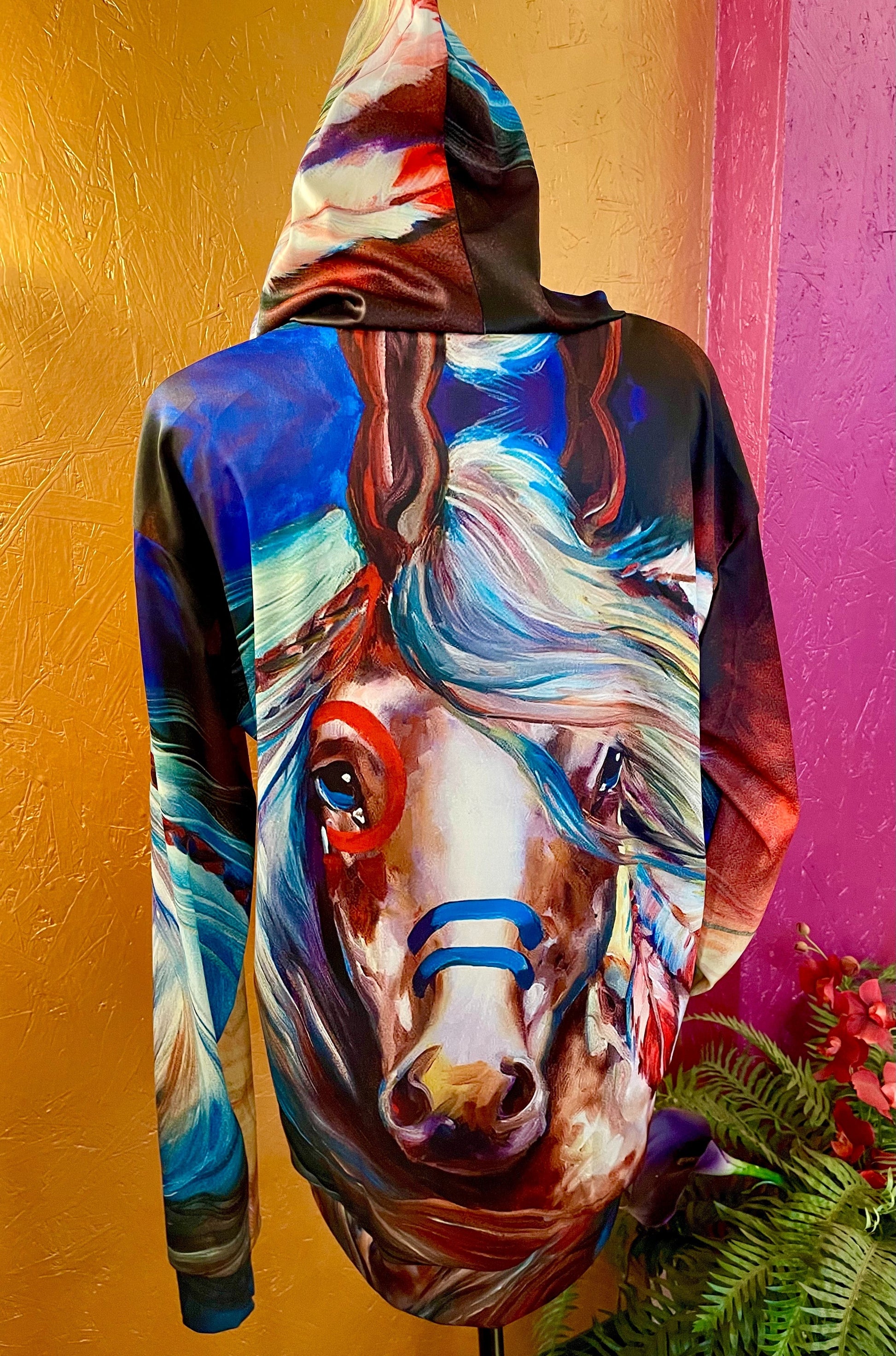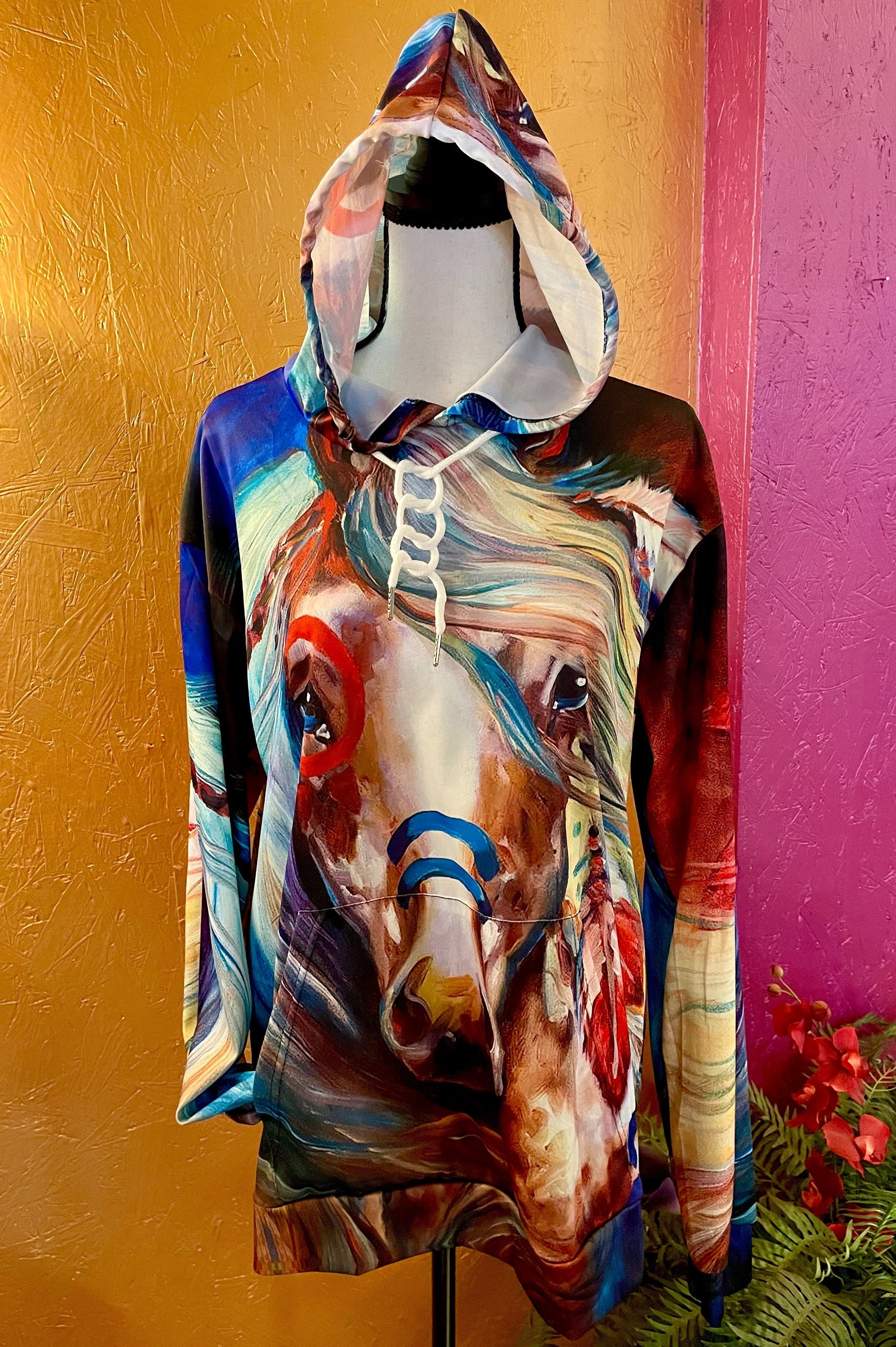 Constructed with a poly blend, this unisex 3D Print Horse Hoodie features bright, long-lasting colors and a stylish horse print. Its lightweight design makes it a comfortable and versatile choice for any occasion. Stay warm and fashionable with this must-have hoodie.