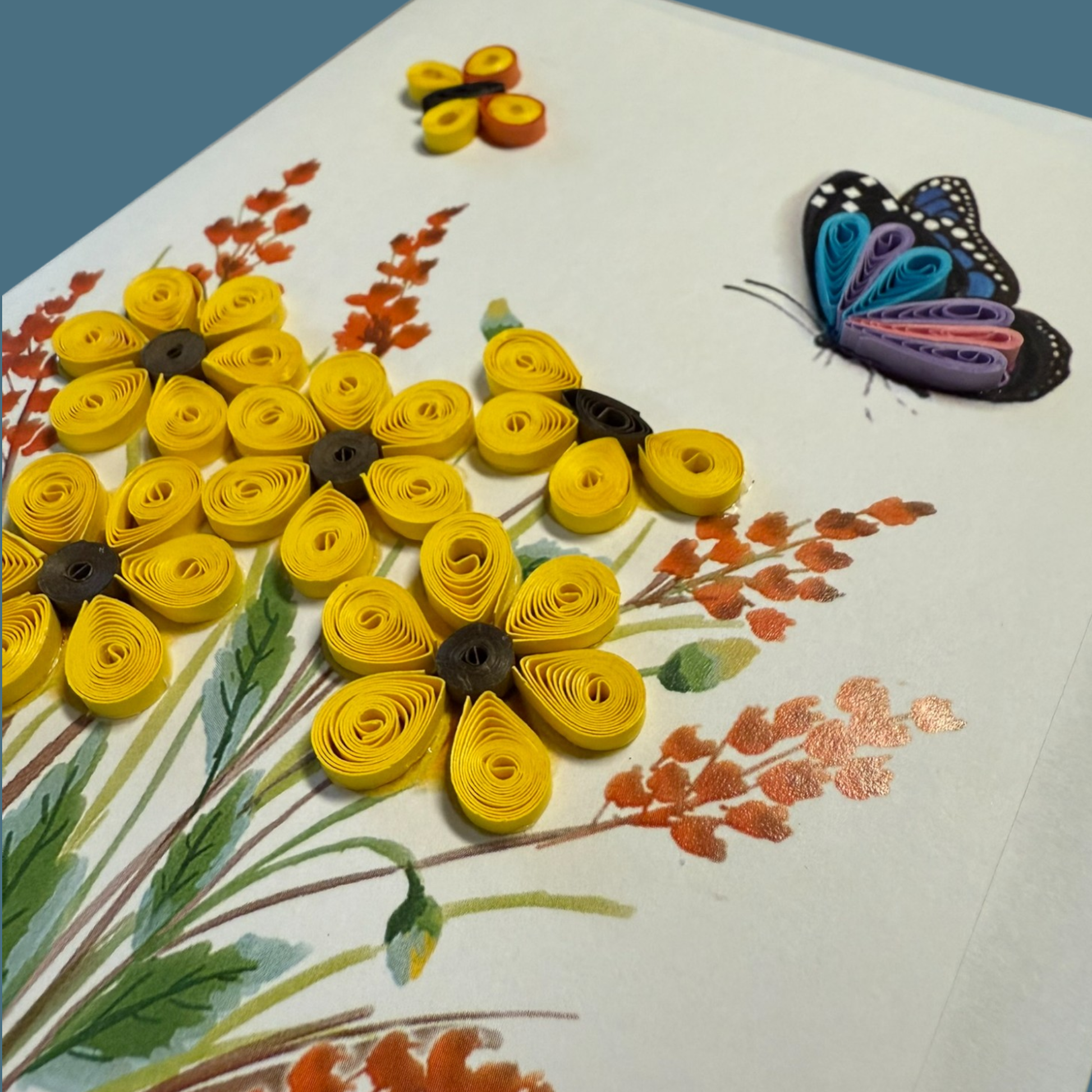 Let your greetings take flight with the Butterfly Quilled Greeting Card. Perfect for sending joy, love, and warmth, it's more than just a card; it's a keepsake that will be treasured for years to come!