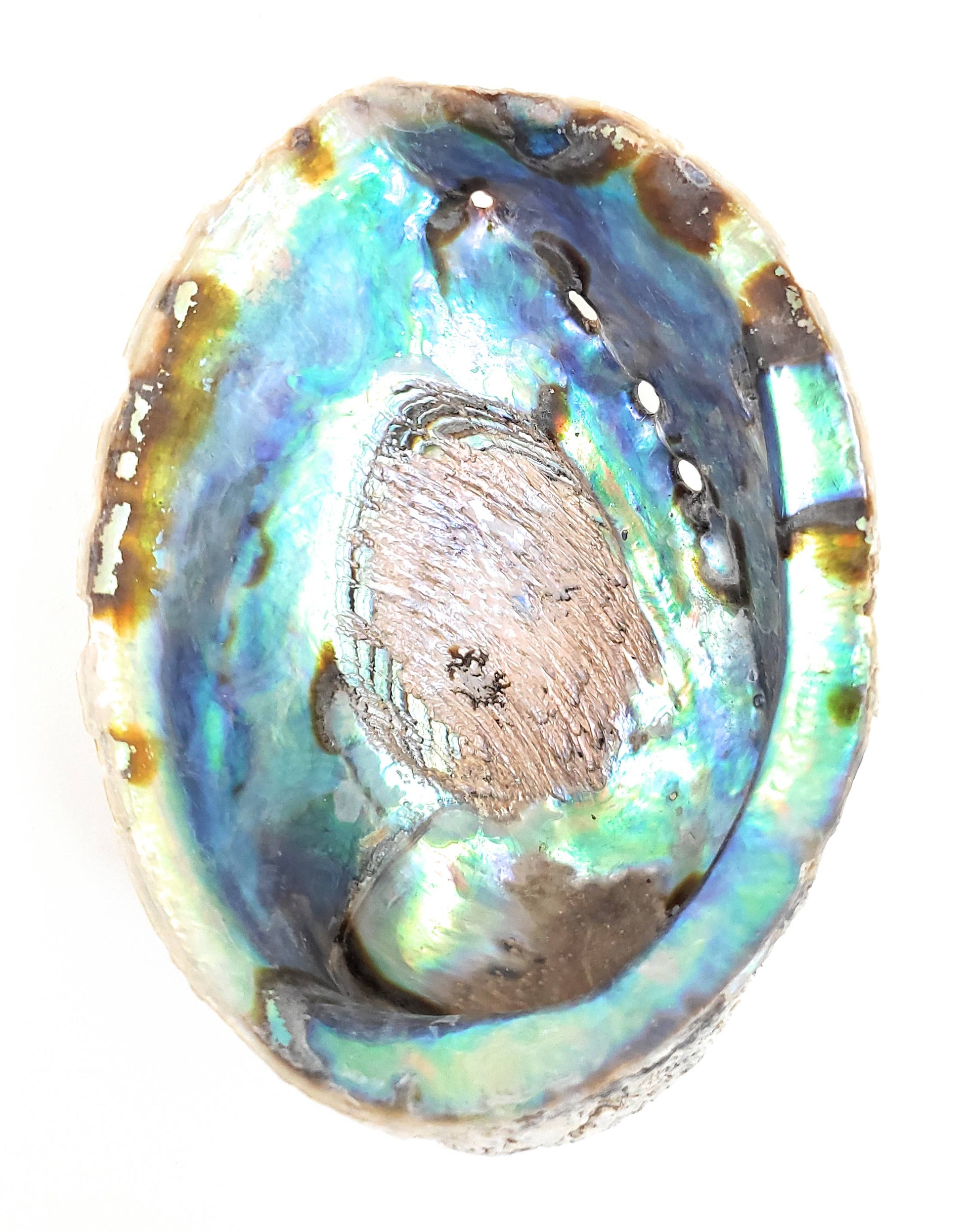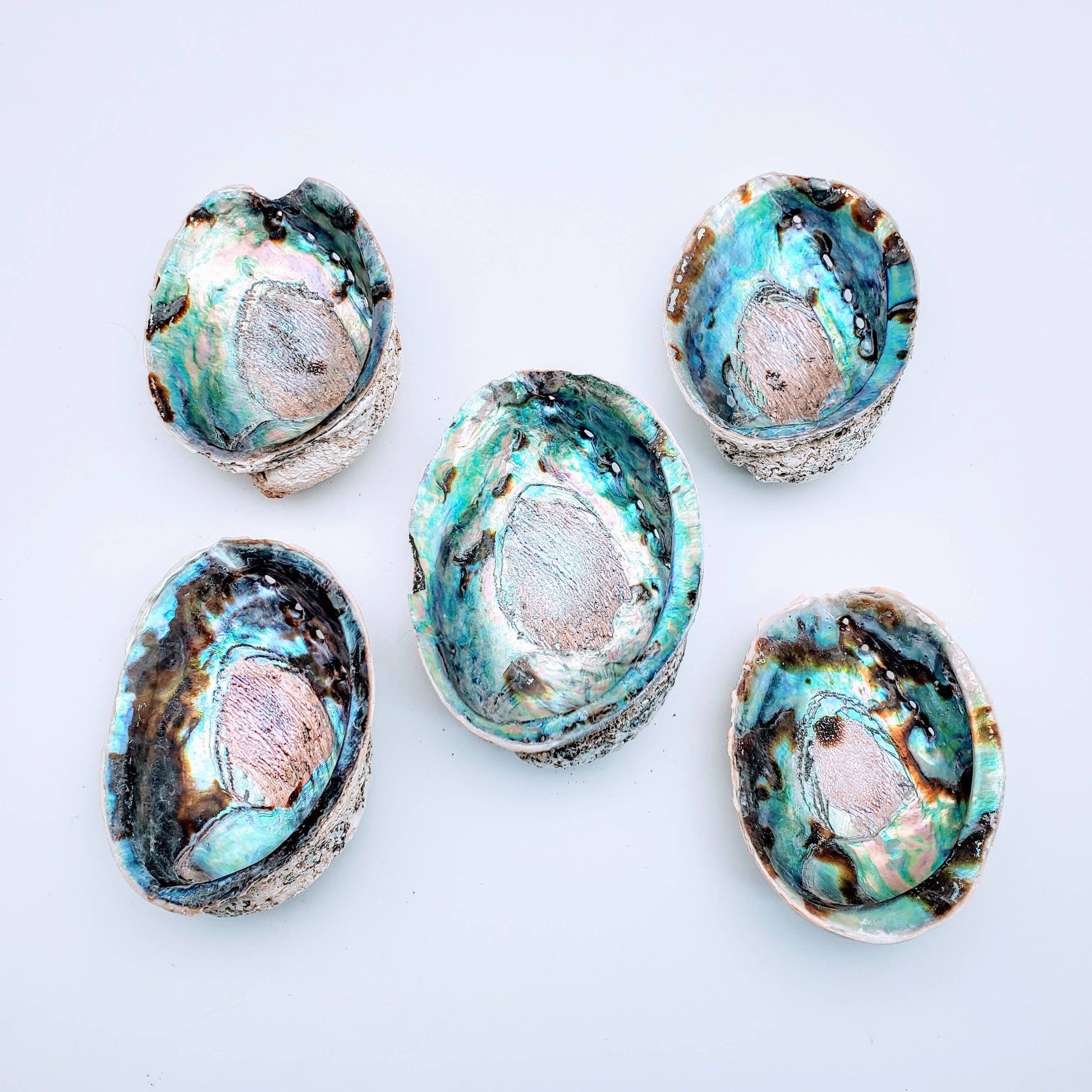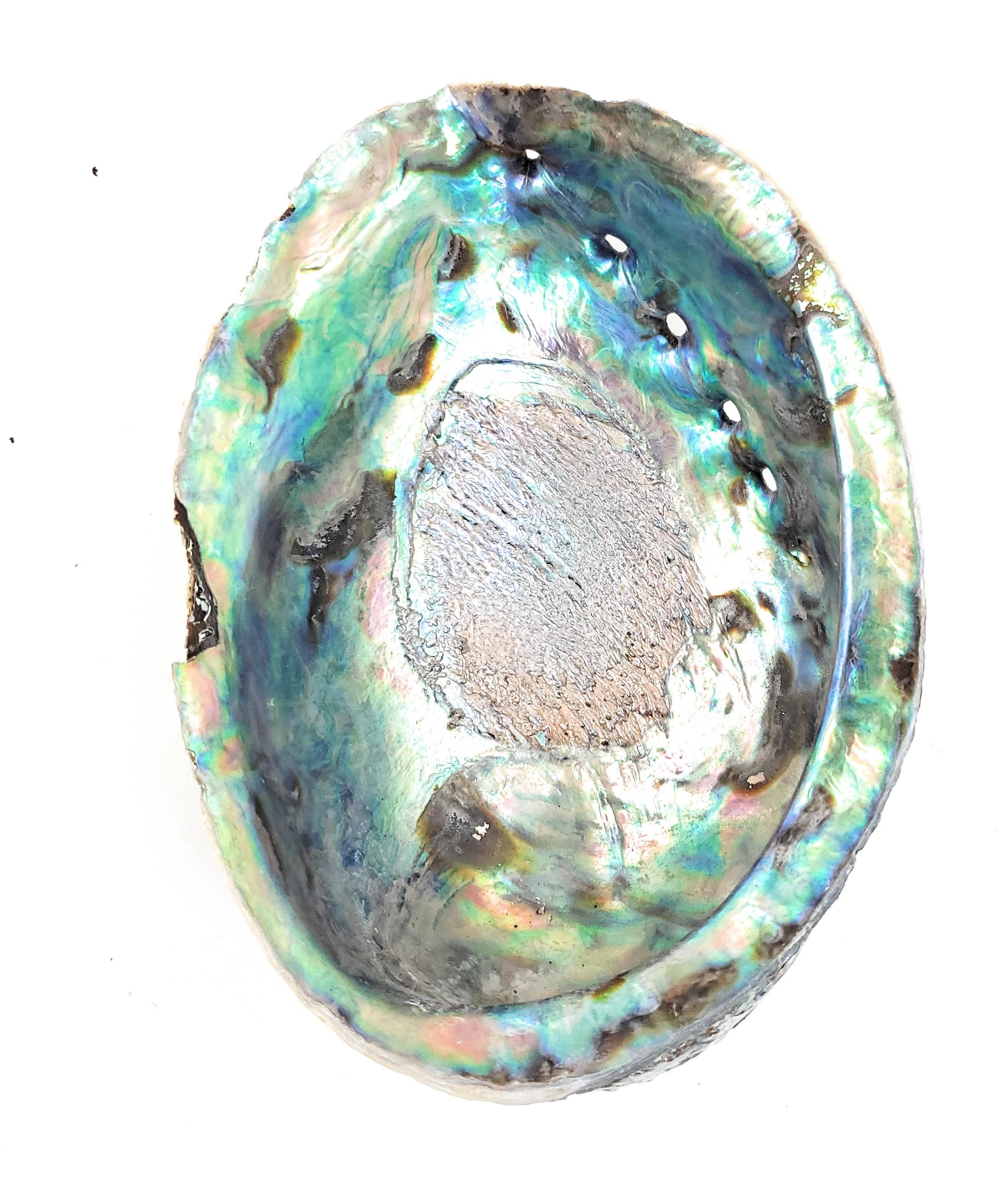 Not to be confused with other Abalone shells, these Paua Shells are imported directly from New Zealand. Each shell has its own unique color and character. Some are near perfect and others have slight chips along the edges.