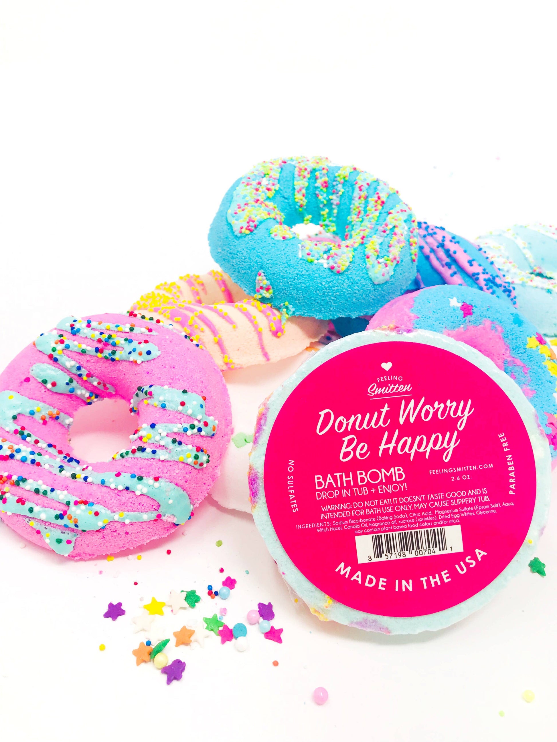 Fizz your cares away in a soothing, softening blend of Epsom salts and oh so sweet fragrance! Colors and sprinkle varieties are assorted.