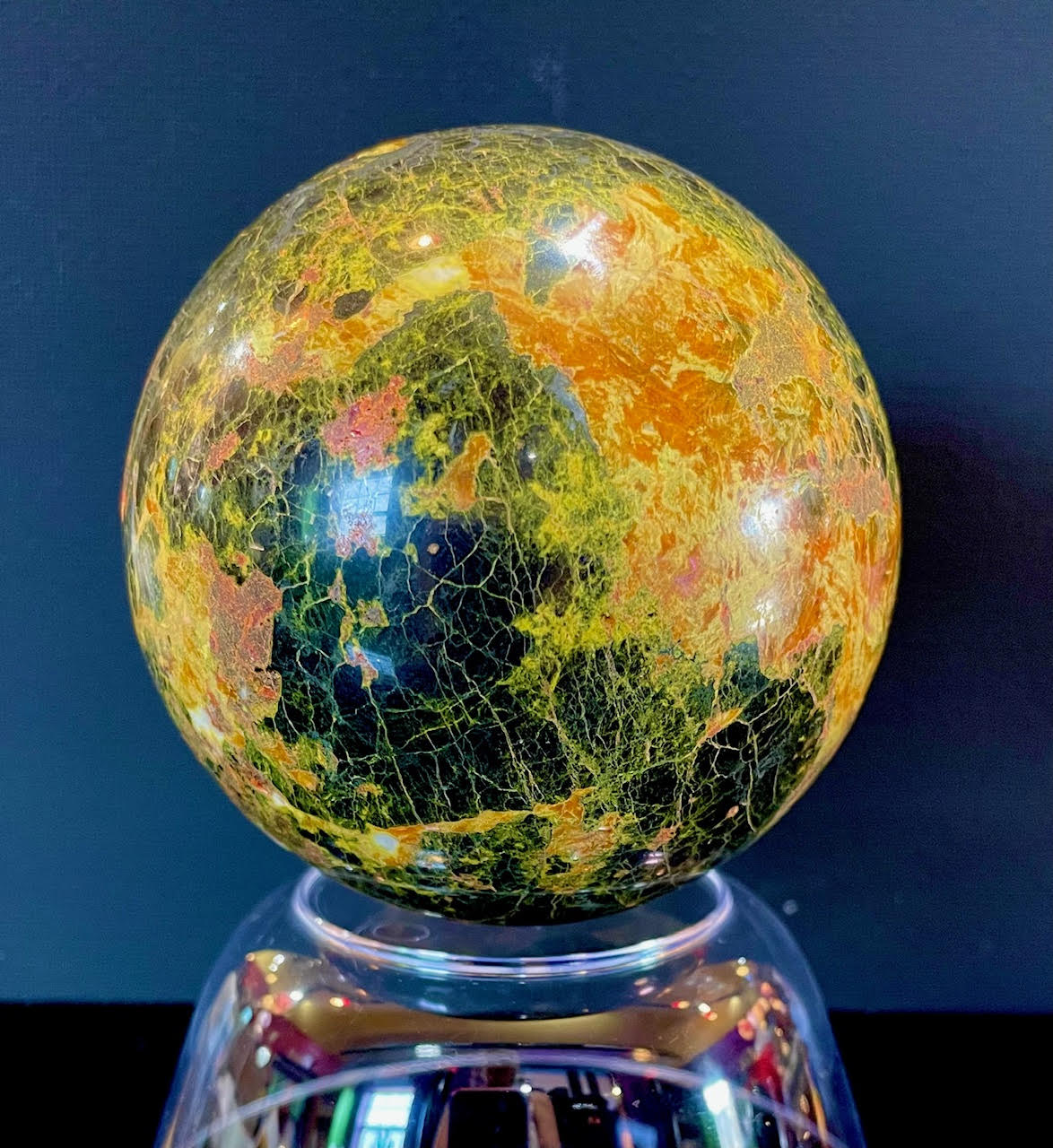- Hand-polished display stone with a luminous, glass-like finish that highlights the stone’s natural patterns.
