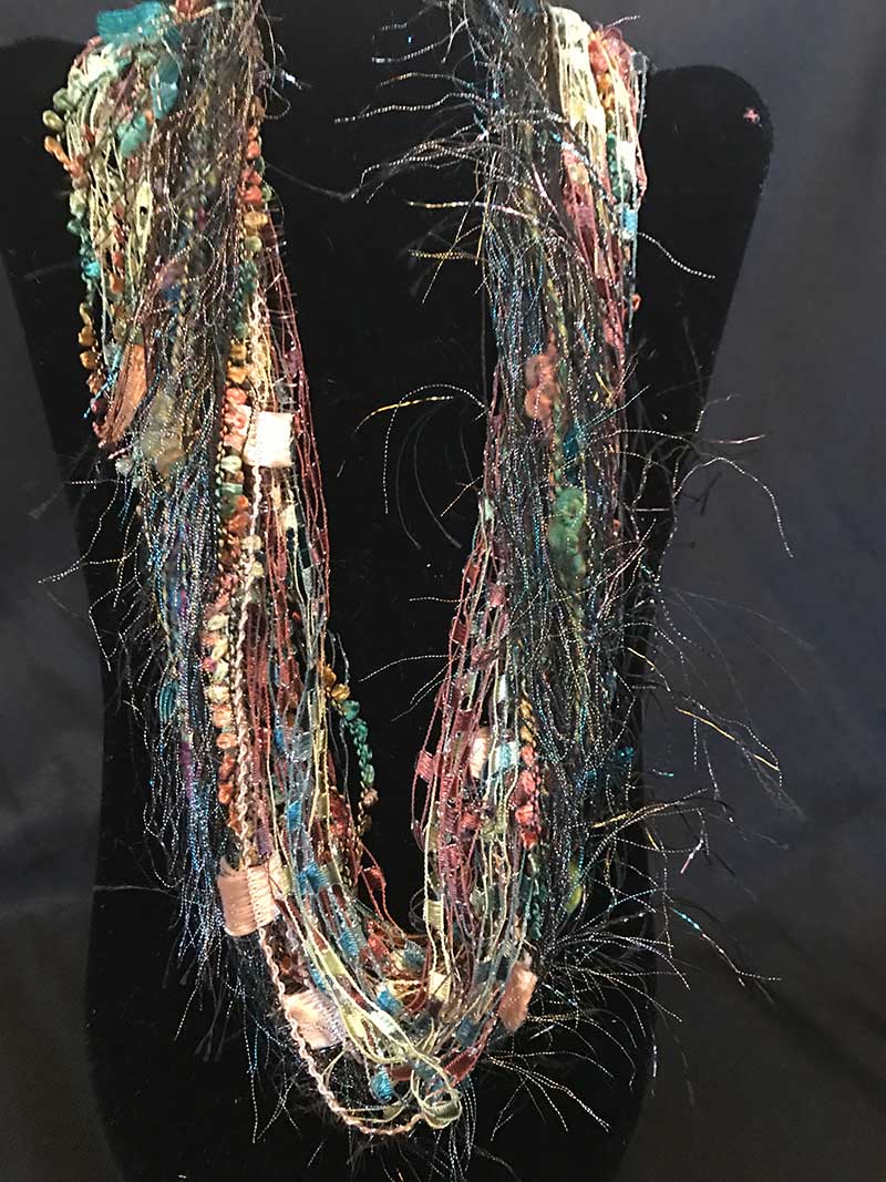 Introducing the LaPetite Infinity Scarf in stunning Teal, Brown, and Gold—a handmade masterpiece that seamlessly blends vibrant colors with playful elegance. This short-style scarf is not just an accessory; it’s a statement piece designed to elevate your wardrobe.