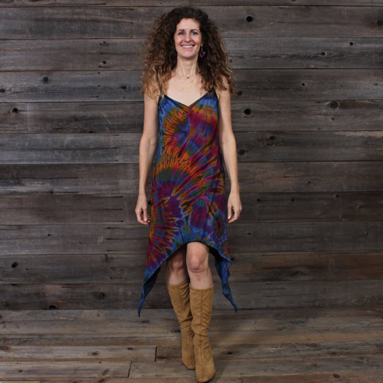 Magnetized Dress Spandex Rayon Mudmee Tie Dye Double Angle Cut Spaghetti strap Slip Dress
