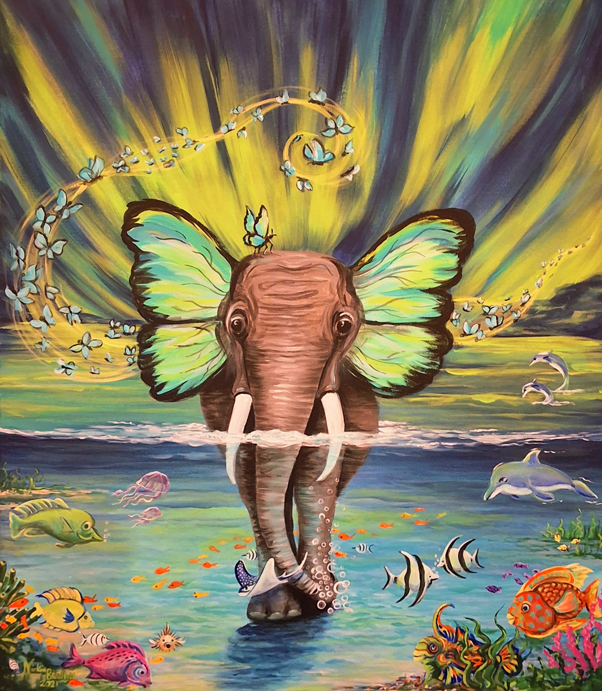 With decades of creative expertise, artist Nickie Bradley brings surreal imagination to life through Aurora The Elephant. This unique artwork captures a blend of whimsy and wonder, inviting viewers into a dreamlike realm where imagination knows no bounds. Aurora The Elephant is a testament to Nickie’s mastery in crafting pieces that resonate deeply, making it a distinguished addition for any collector seeking evocative, expertly crafted art.