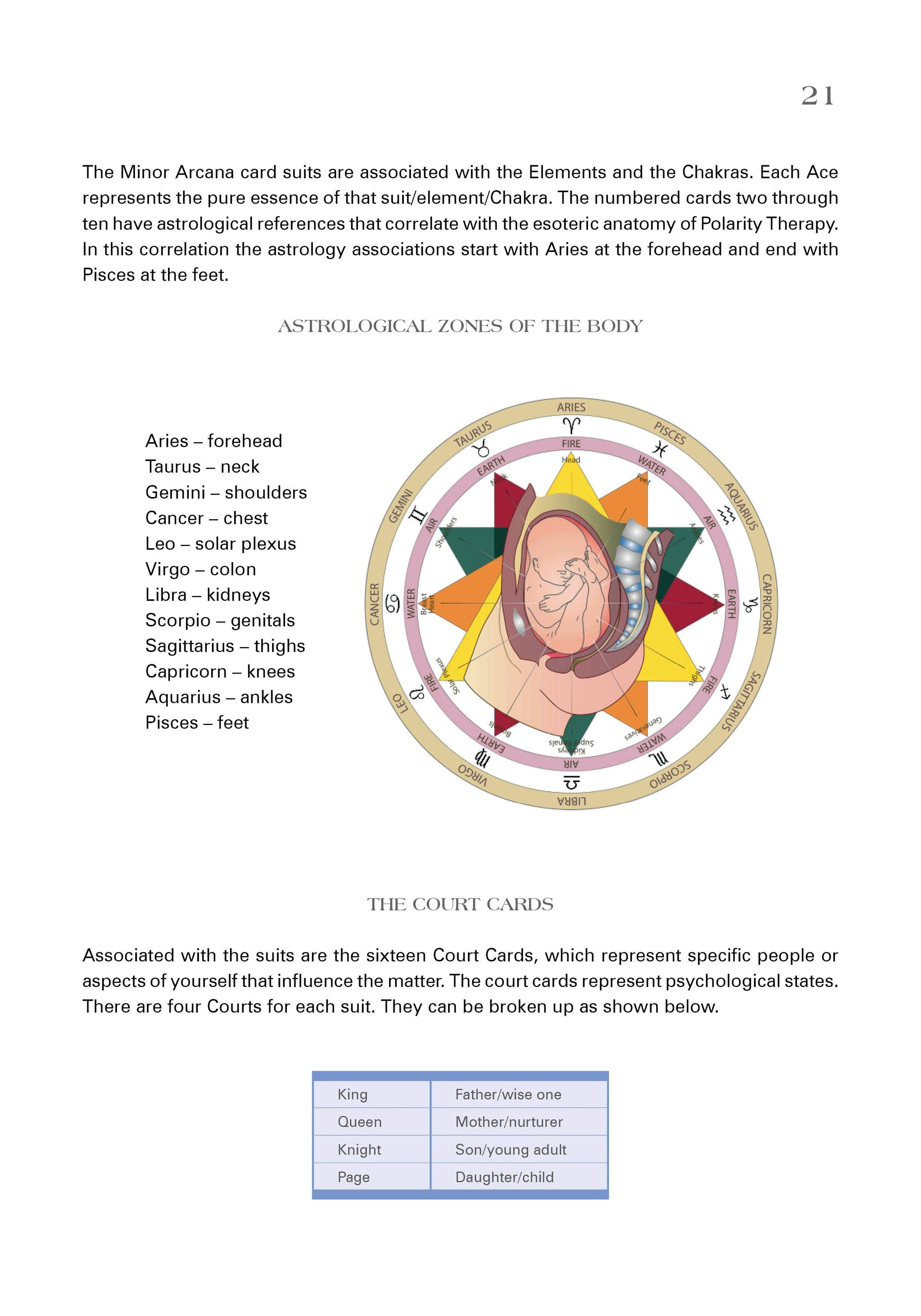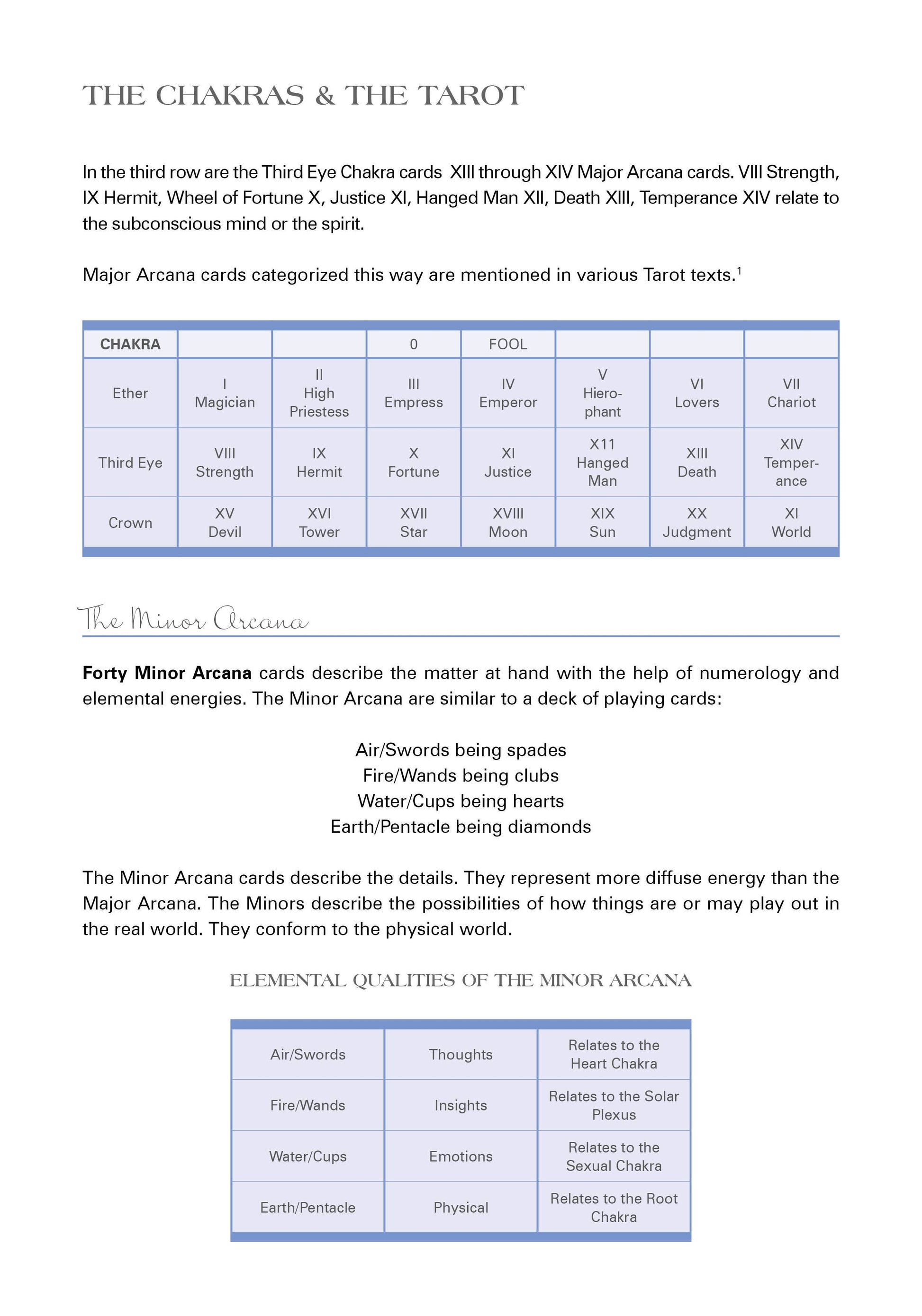 Using the Tarot, fused with the Chakra system, facilitate healing and promote change in your life. Discover how to use the Tarot and the Chakras to support holistic views and to alter energy systems, thereby affecting patterns presented to you in the cards. This comprehensive guide takes the Whole into account by including meditations, exercises, bodywork techniques, home remedies, dietary recommendations, and the use of crystals. All of these help balance energy and facilitate change of the physical, mental, and spiritual body. Learn about the energy behind the Tarot and how it interconnects with the Chakras. Use the advice, card attributes, and stories in this book to see important patterns and then set into motion your informed, inspired choices, so that you can live your life more fully.