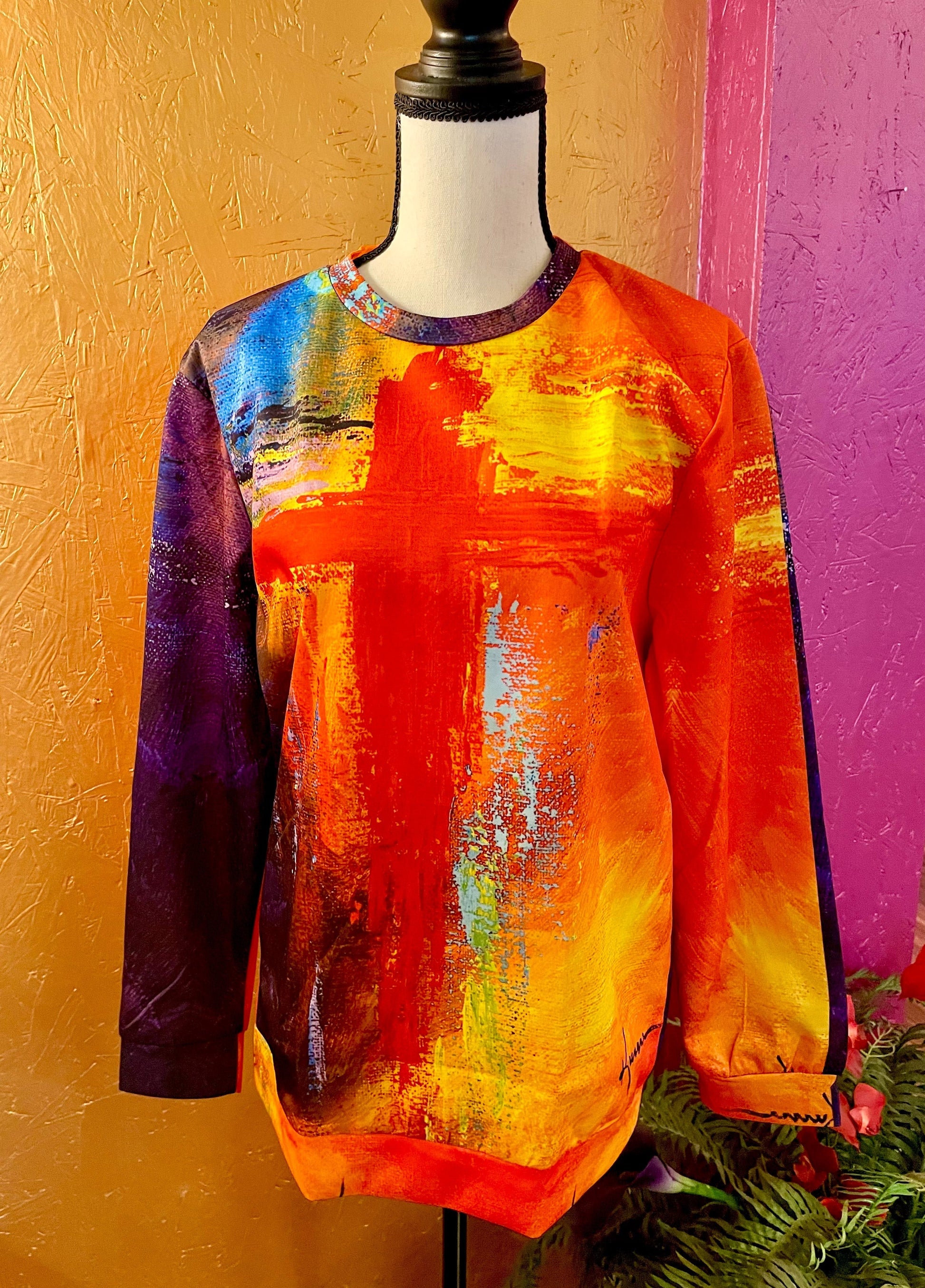 This Colorful Cross Pullover is made of a comfortable poly blend and features a crew neck and long sleeves. Its vibrant cross design adds a unique touch, making it perfect for both men and women. Stay cozy and stylish in this versatile, unisex pullover.