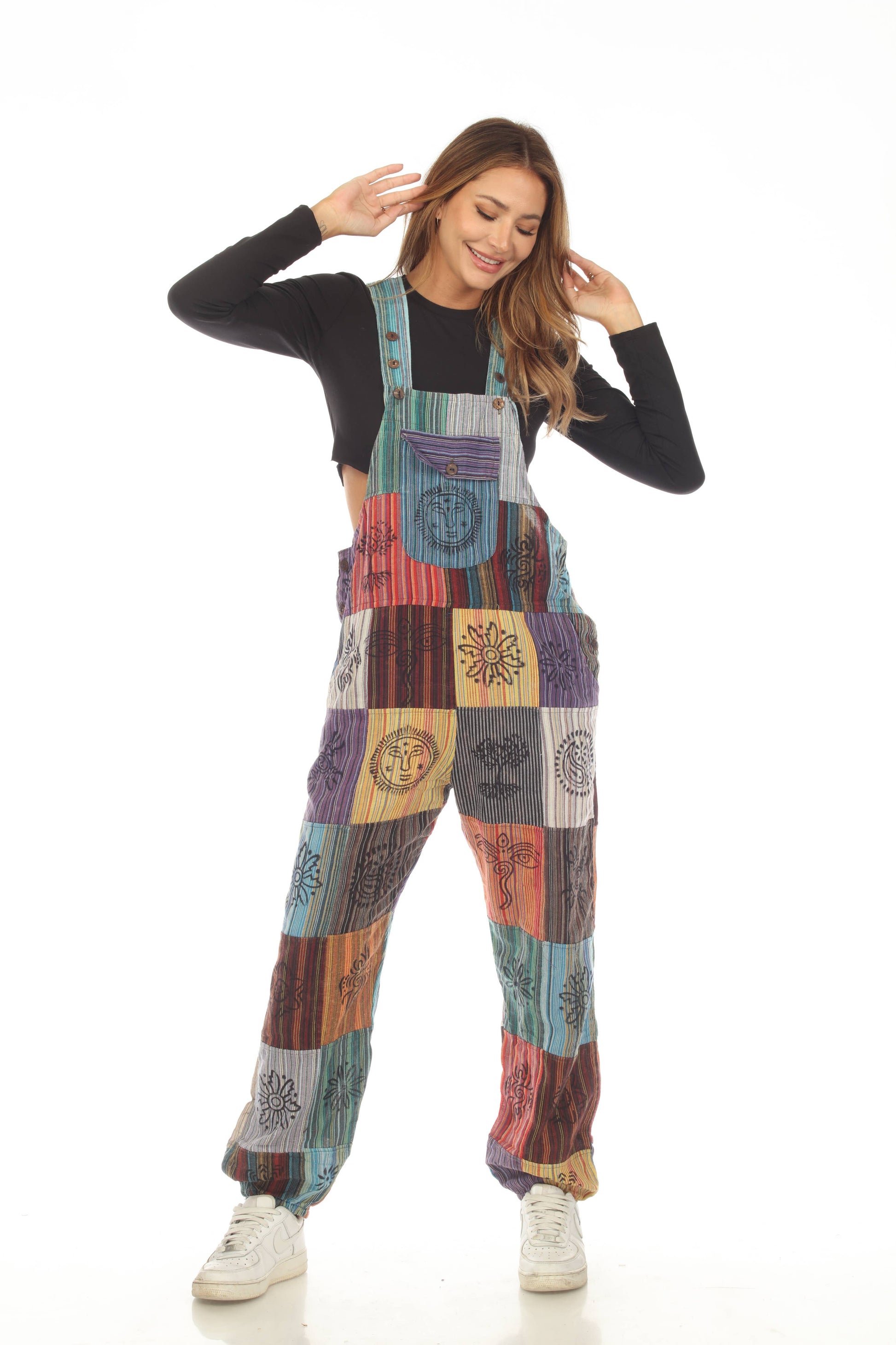 Made from high-quality cotton, this jumpsuit ensures a soft, breathable fit that keeps you comfortable all day long. The vibrant multi-color design adds a pop of personality, making it an eye-catching choice for various occasions.