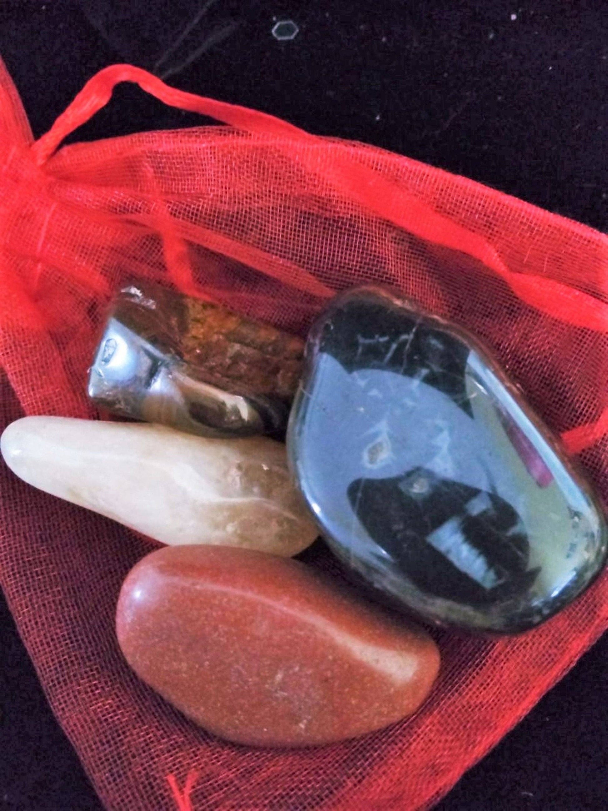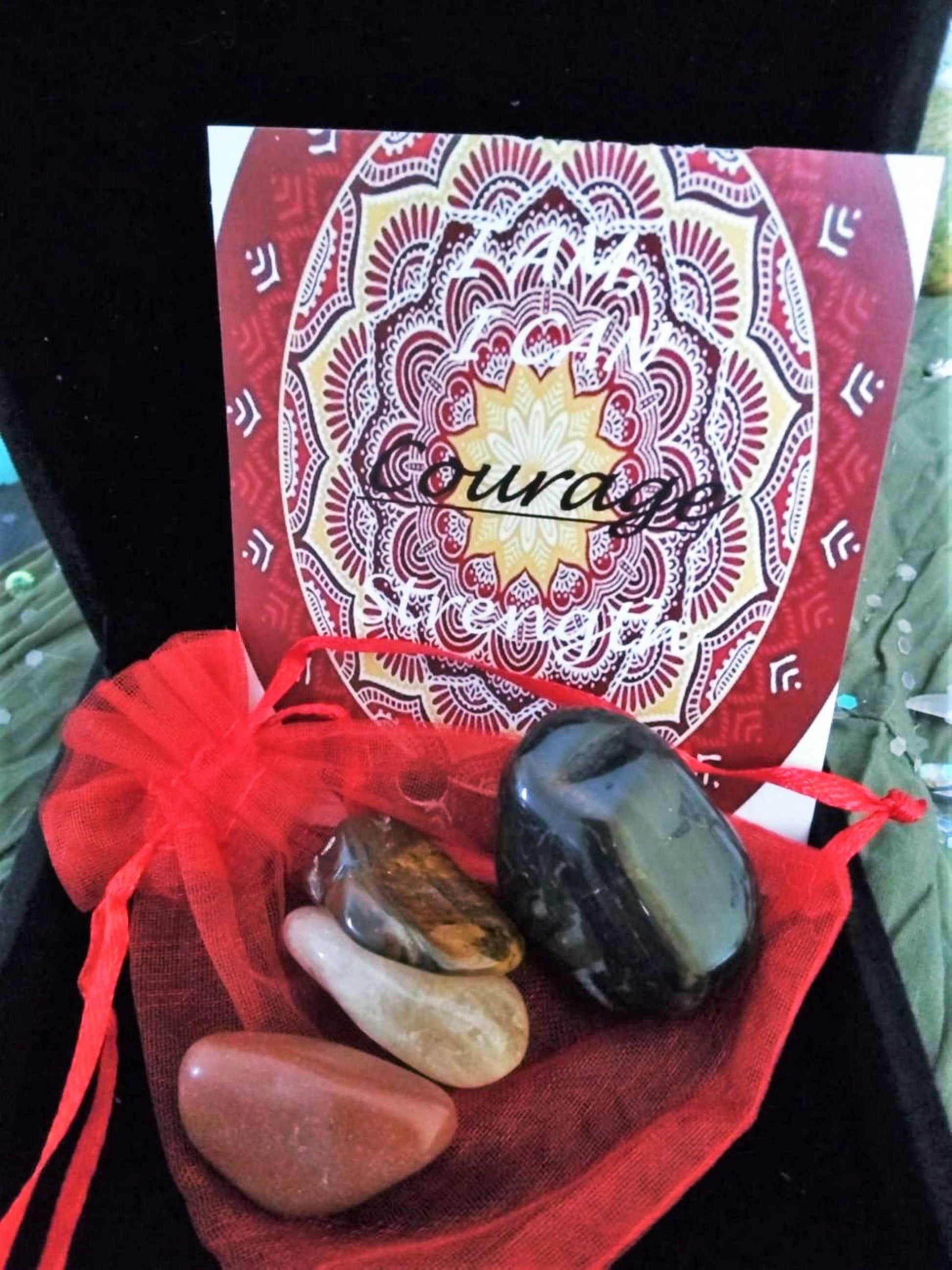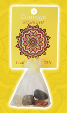The four stones are in a reusable organza bag and come with an information card to assist you in finding the strength and courage to overcome whatever may come your way.