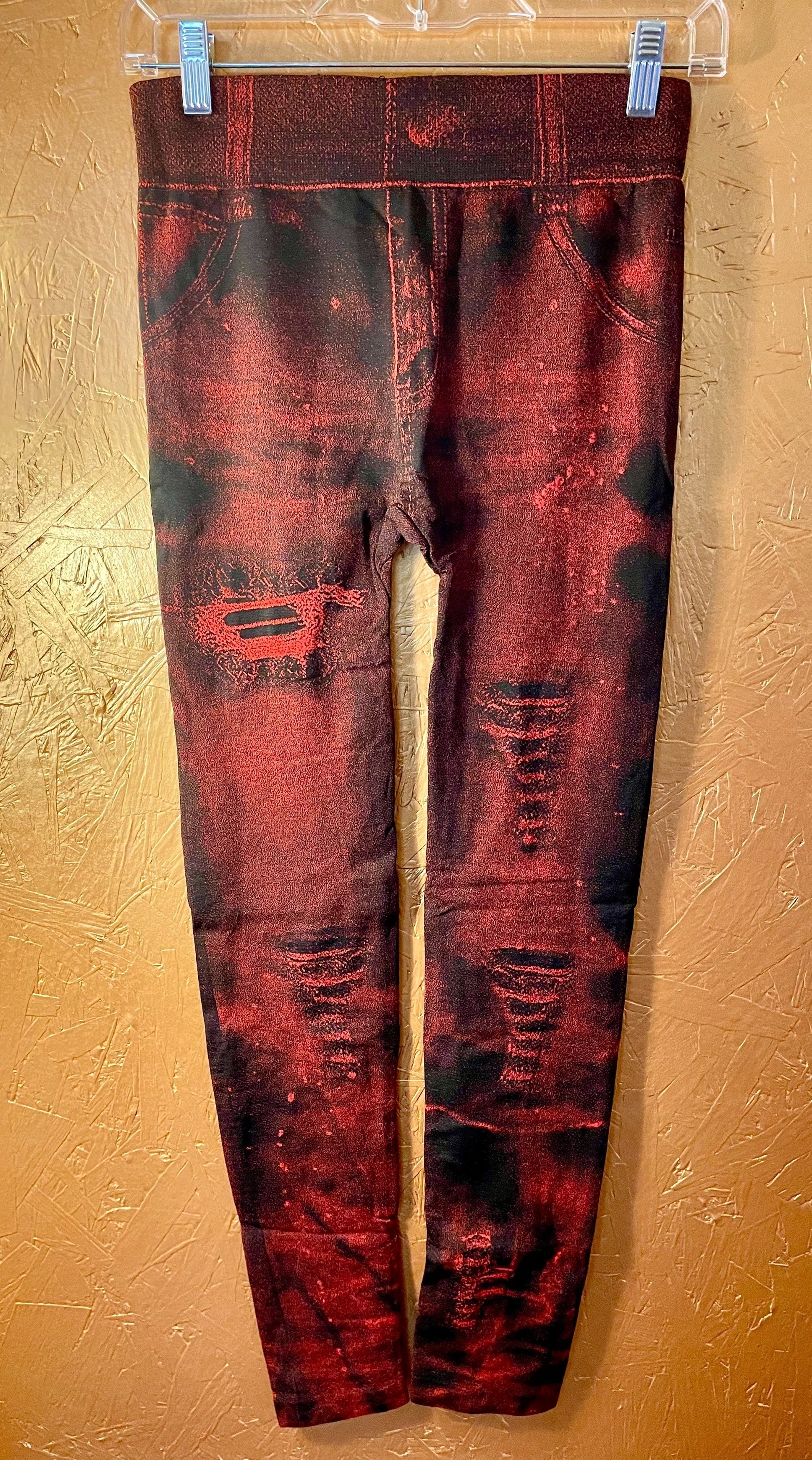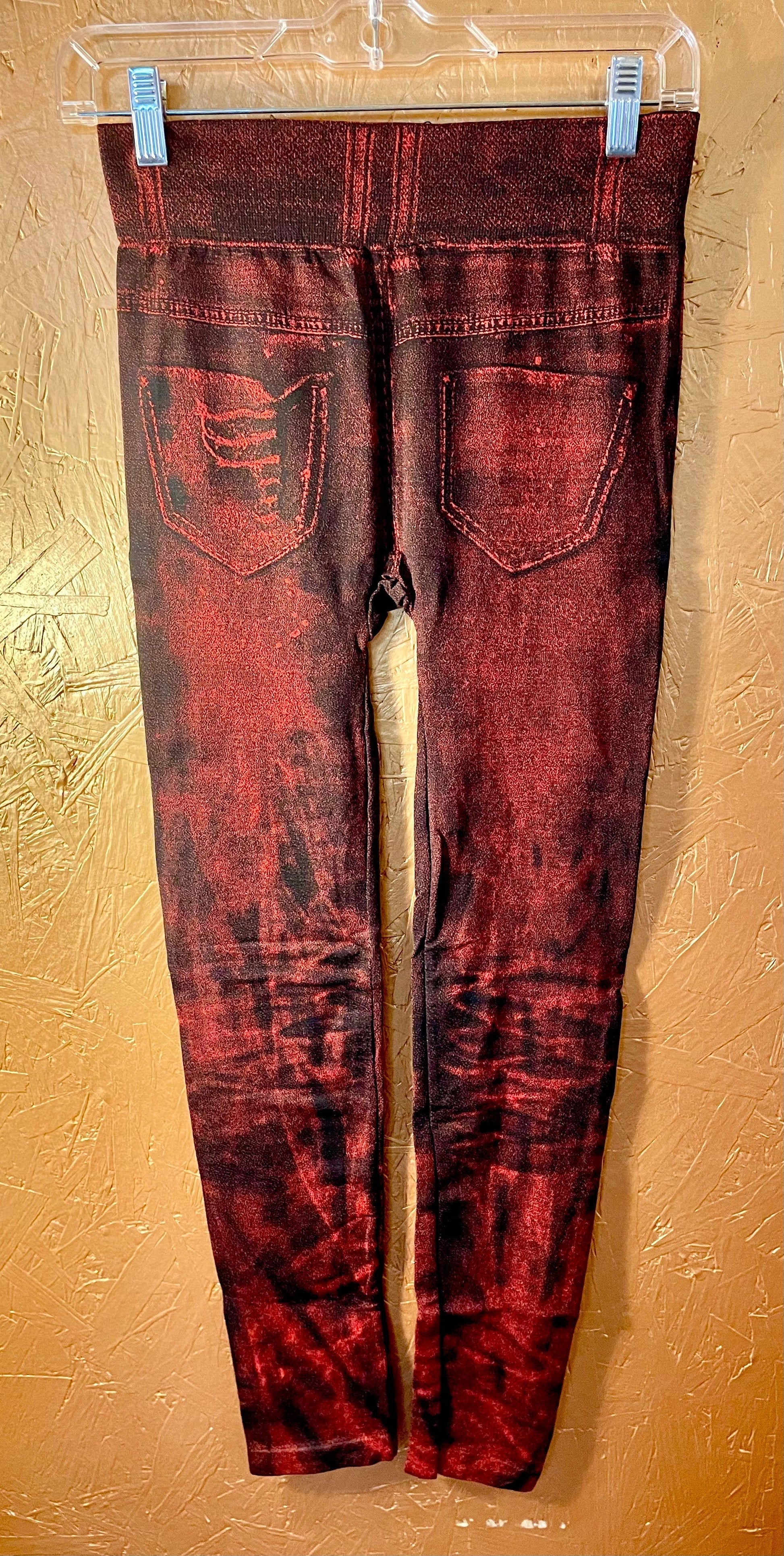 Experience the comfort of our Denim Look Leggings, now available in Red or Black. Made with a poly spandex blend, these leggings provide a figure-flattering fit and a stylish denim look. Perfect for any occasion, these leggings are a must-have in your wardrobe.