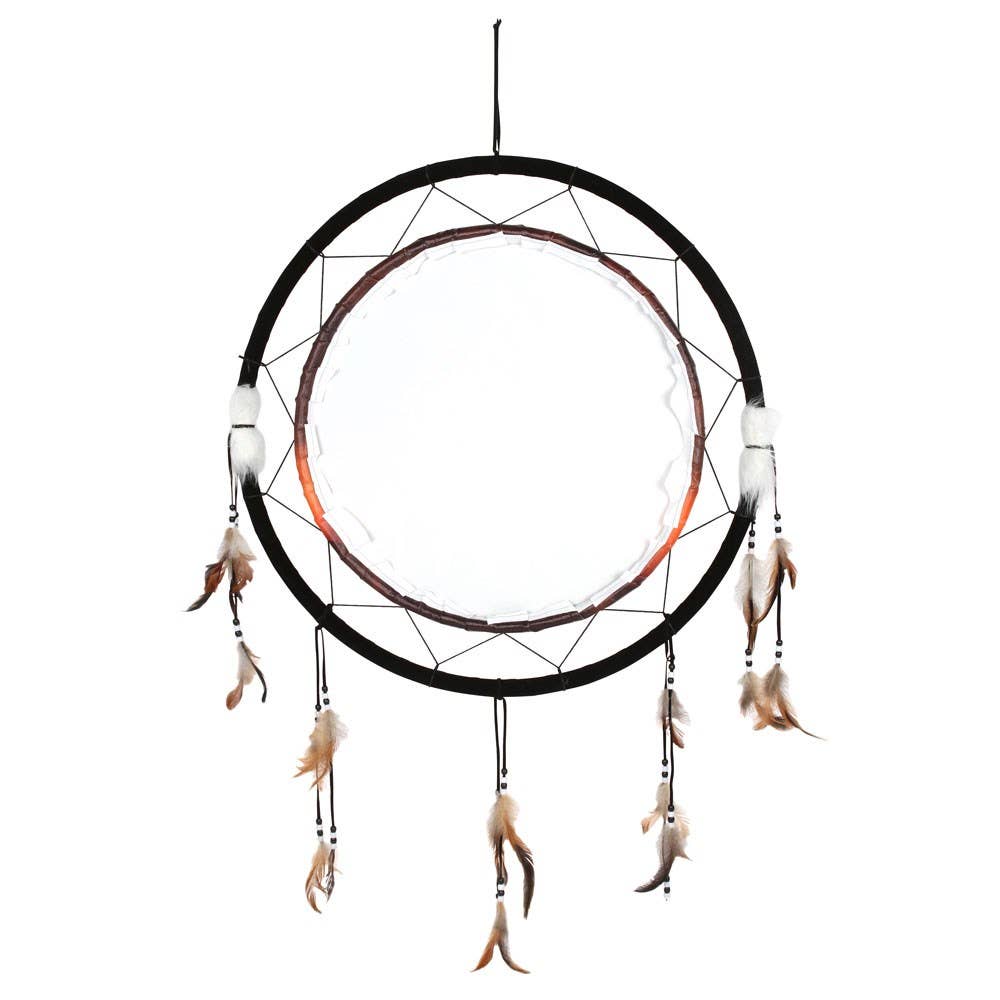A large dreamcatcher featuring stunning licensed artwork from gothic artist Anne Stokes with bead and feather accents. Printed with a stunning dragon in front of the summer sunrise at Stonehenge, 'Solstice' is an eye-catching addition to an otherwise traditional design. Officially licensed and exclusive to Something Different Wholesale.