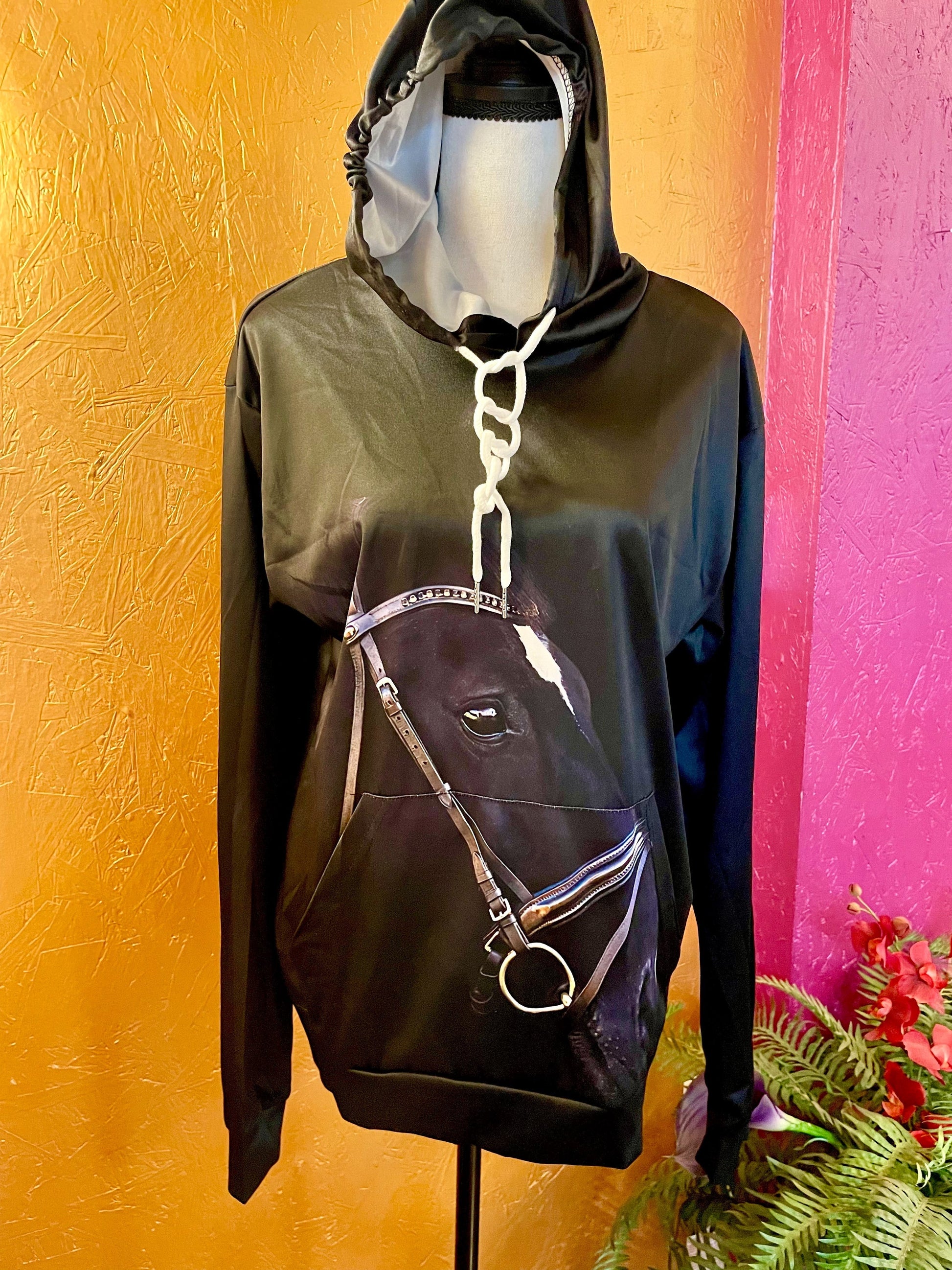 Expertly crafted with a poly blend, this 3D Black Horse Hoodie is not only lightweight, but also boasts a bold 3D horse print on the back. Perfect for both men and women, this unisex hoodie provides both comfort and style.