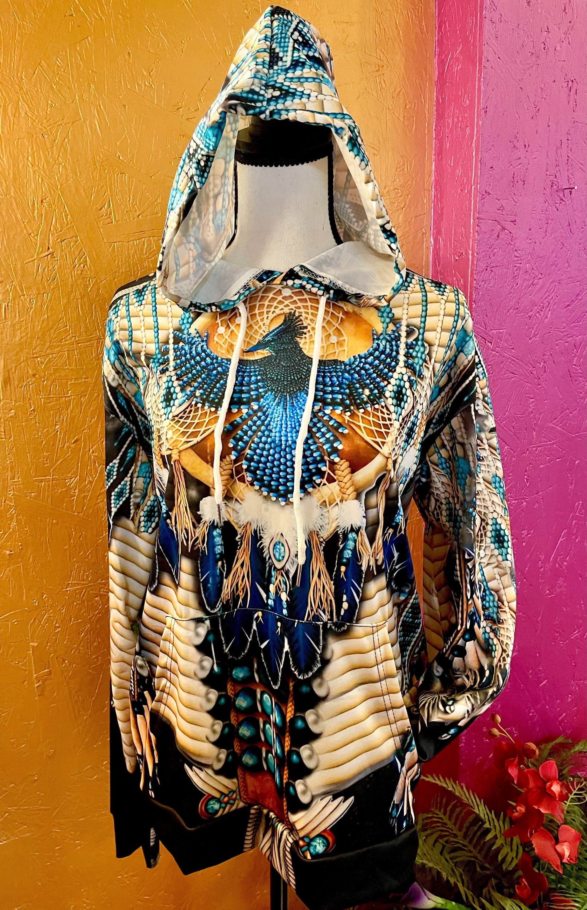 Expertly designed with bold colors and a unique 3D phoenix and Native American design, this light weight hoodie is perfect for a modern, yet timeless look. Stay comfortable and stylish with its long fit and statement-making design.