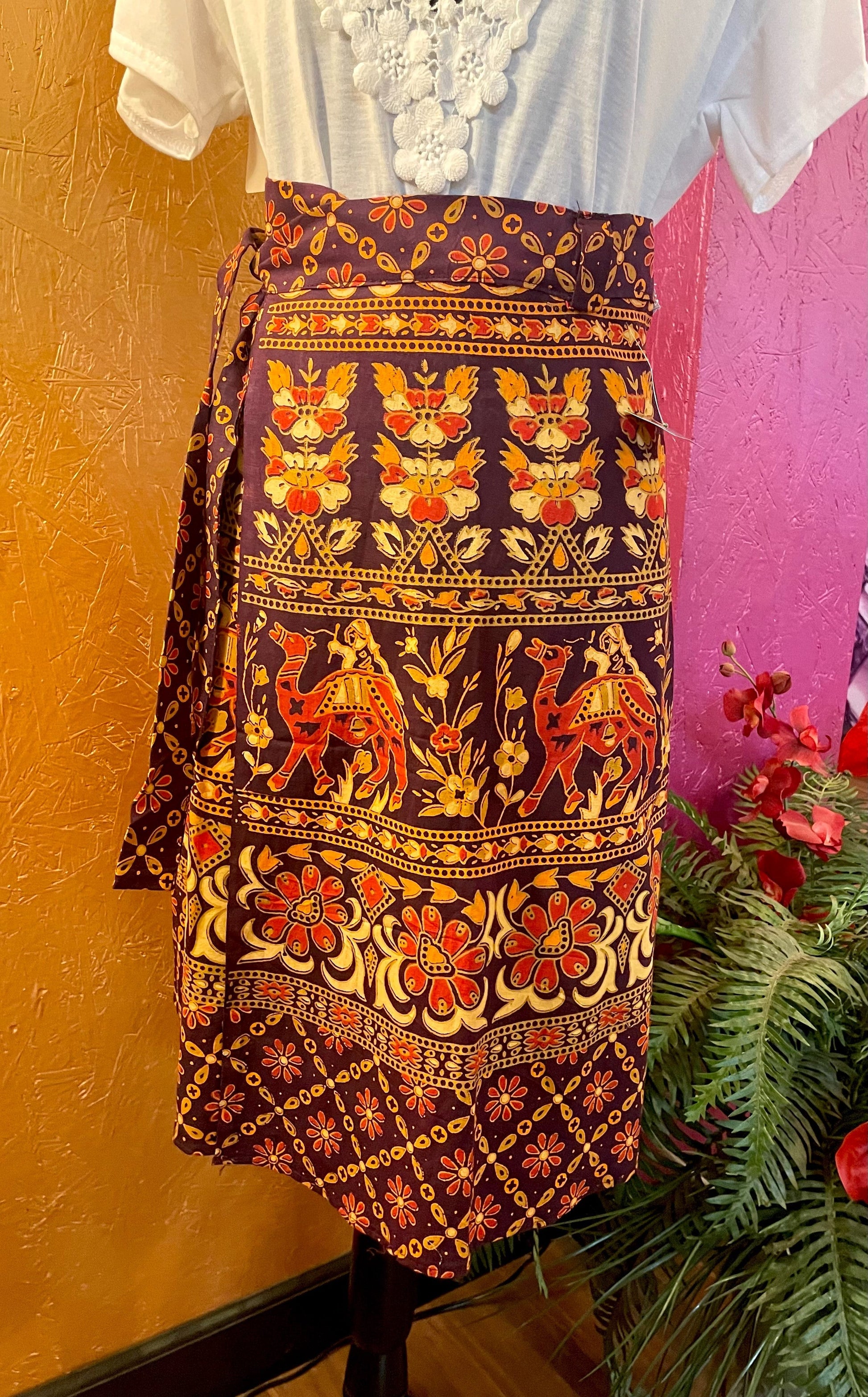 Get ready to rock the bohemian look with our Boho Camel Print Wrap Skirt. Made from soft cotton, this skirt features a unique camel print in warm tones of brown, orange, and yellow. Versatile and stylish, it's the perfect addition to your wardrobe for a free-spirited yet chic vibe.