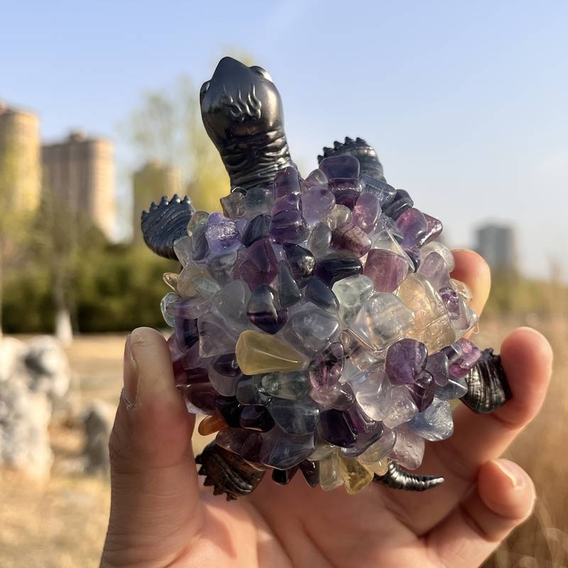 Handmade Crystal And Metal Turtle Figurine Natural Stone Discover a shimmering, artisanal piece designed to elevate any space. From The Enchanted Bazaar, a trusted name in premium artisan décor, this turtle figurine blends crystal clarity with modern metal accents and a natural stone base to create a captivating centerpiece.