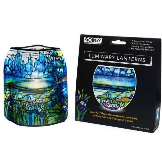 Leaded glass windows were among Louis C. Tiffany’s (American 1848-1933) most significant works. This beautiful Modgy is inspired by one of the five panels which originally comprised “Good Shepherd with Landscape,” designed by Frederick Wilson (American 1858-1932). Two of the panels are in the collection of the New-York Historical Society and reflect quiet moments in nature. The panel adapted here captures the misty blue hues of a lakeside morning as purple irises strive for the first rays of sunlight.