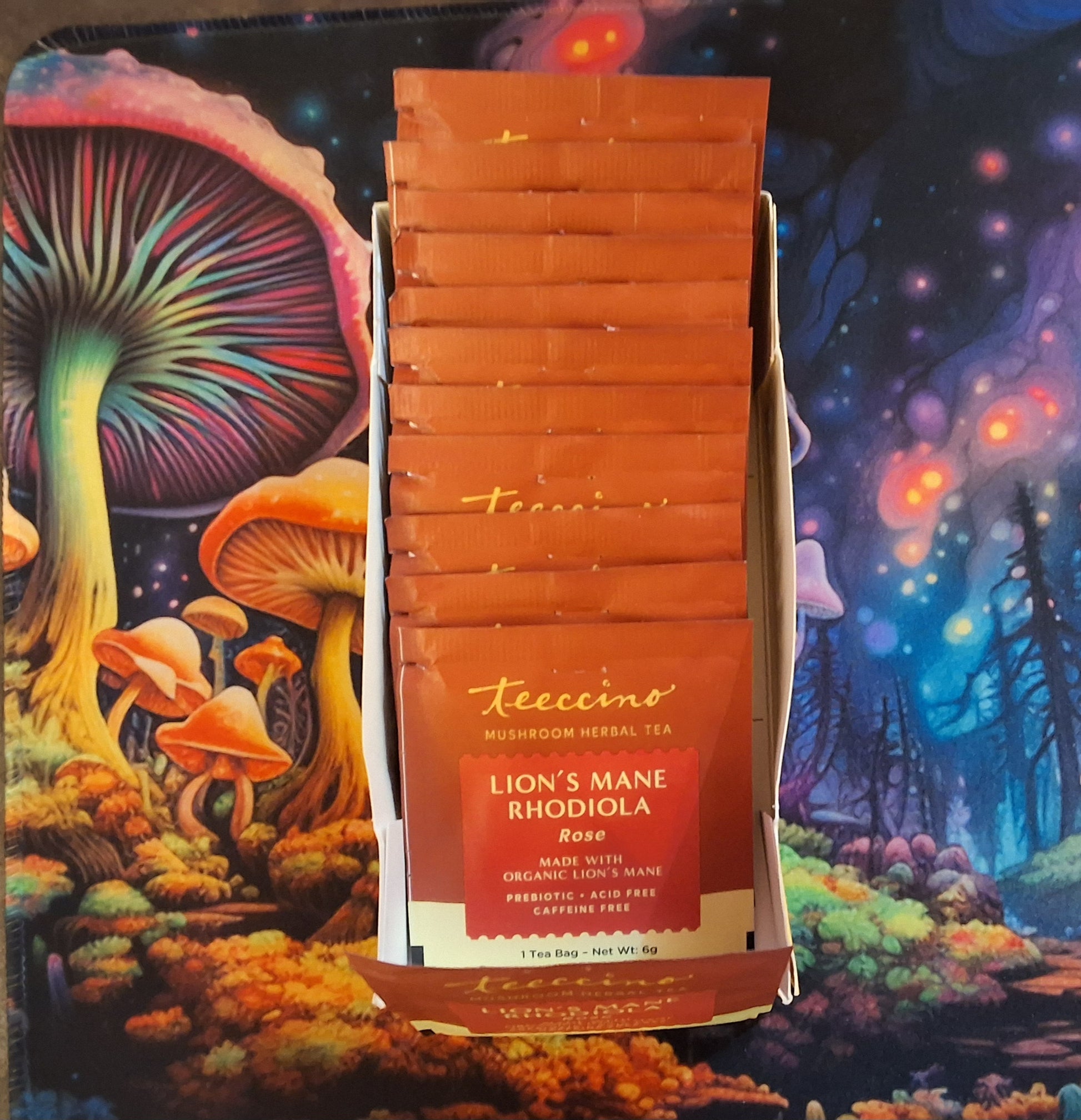 Indulge in a calming, cognitive-supporting ritual with our Lions Mane Rhodiola Rose Tea—an expertly crafted herbal wellness single pack designed to fuel focus, soothe the mind, and elevate your daily routine. This caffeine-free blend pairs the brain-boosting Lions Mane mushroom with the adaptogenic power of Rhodiola Rosea and a delicate kiss of rose for a soothing finish.