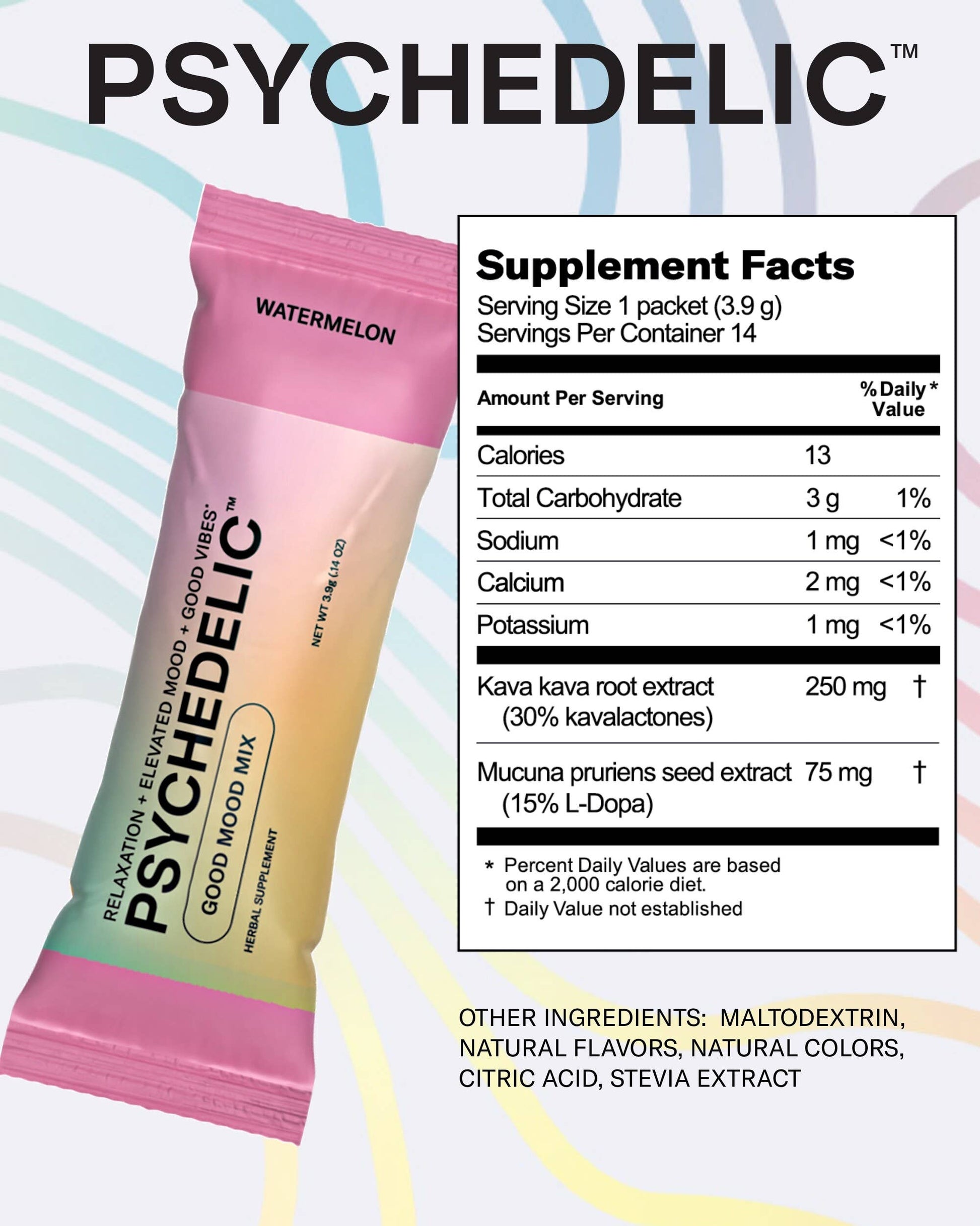 Elevate your spirits and indulge in the delightful taste of our Psychedelic Good Mood Mix - Watermelon. This unique drink mix is expertly crafted for those seeking a refreshing, non-alcoholic alternative to unwind and enhance their mood!