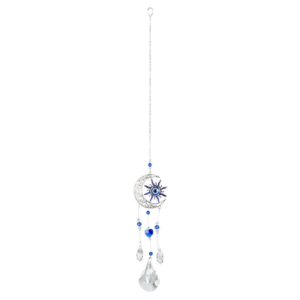 Discover the mystical allure of the SUN & MOON EVIL EYE SUNCATCHER from Benjamin International. This exquisite piece, stretching 16.5" in length, brings together the symbolic sun and moon imagery with the protective evil eye concept. Expertly designed and crafted, it mirrors our commitment to innovative design and our respect for global artisans. This suncatcher will not only add a touch of spiritual elegance to your home but also serves as a beautiful reminder of our interconnected global community. Whether placed in your living room or office, it's sure to catch the light - and your eye.